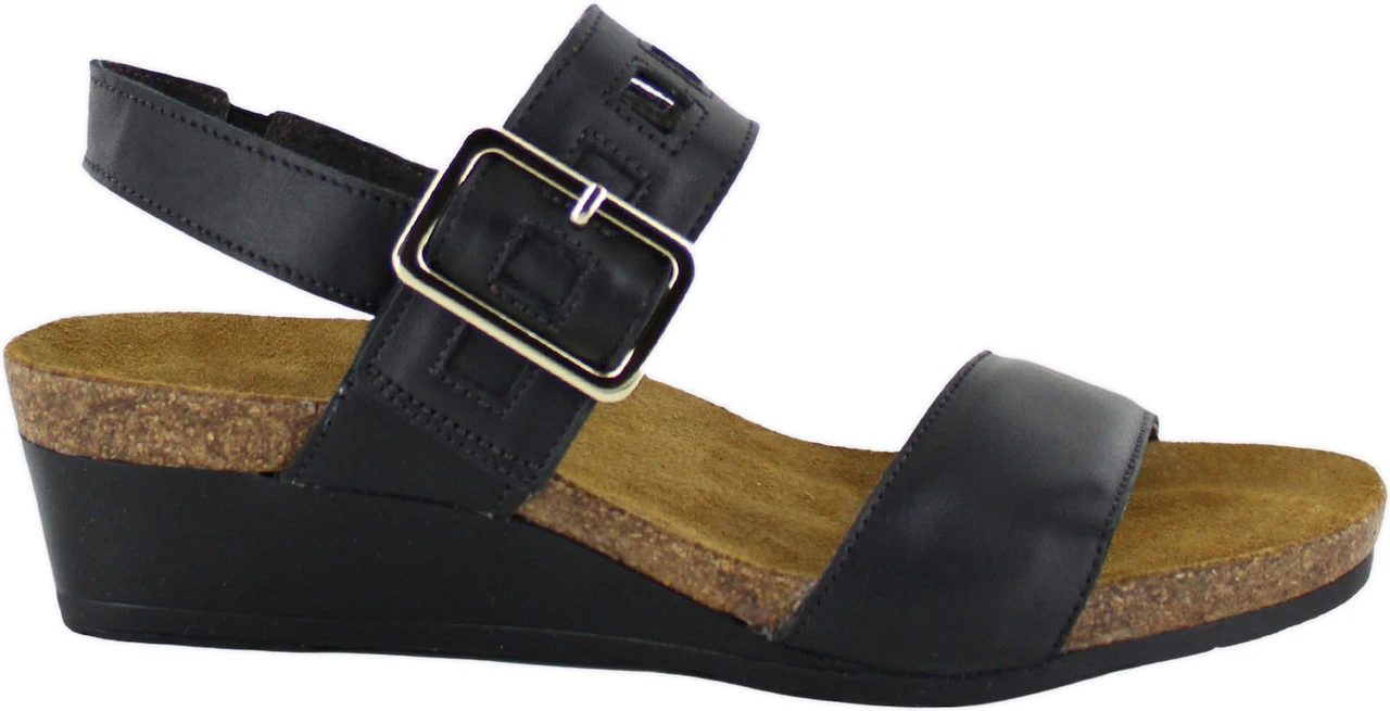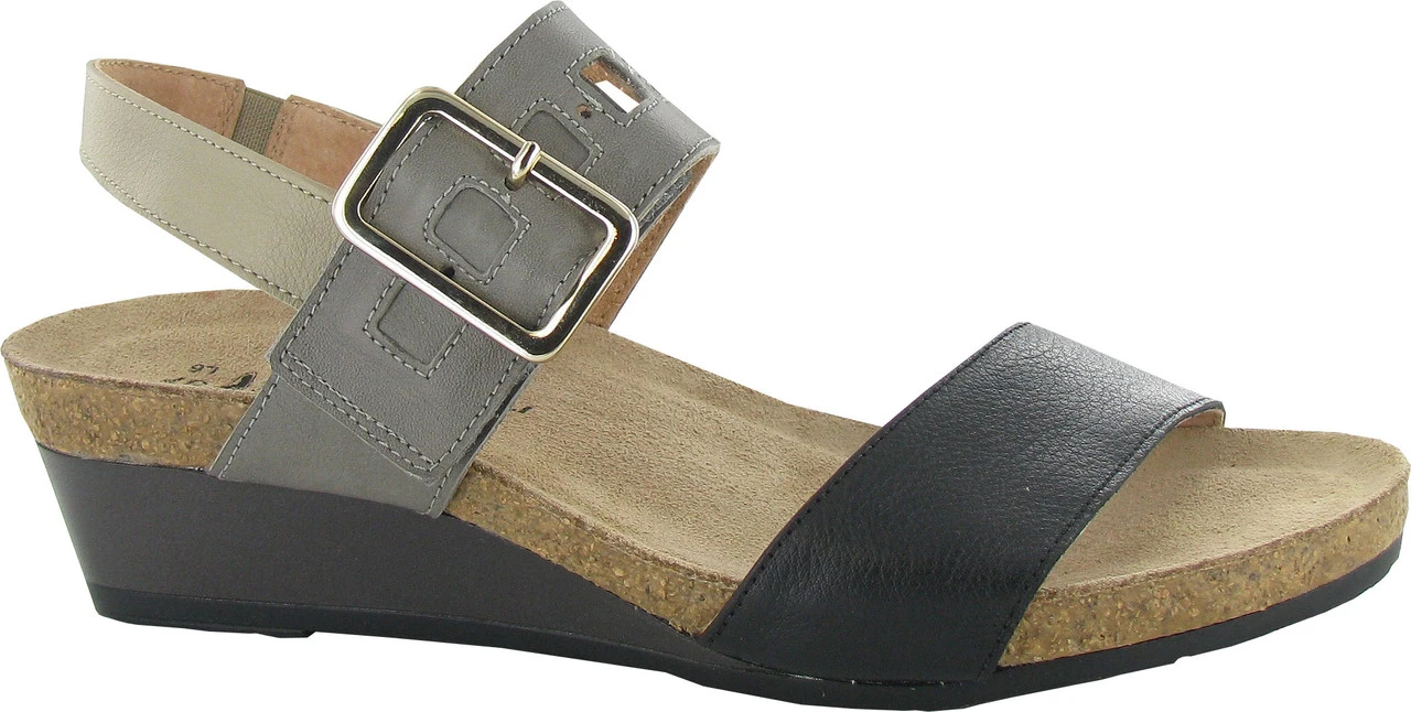 Englin’s Fine Footwear presents the women’s ‘Dynasty’ from Naot. Go day to night with all day comfort and style in the Dynasty wedge. This sandal features fun multi colored straps and a hook and loop closure for adjustability. Naot’s anatomic cork & latex footbed is wrapped in a pampering suede and molds to the shape of the foot with wear.