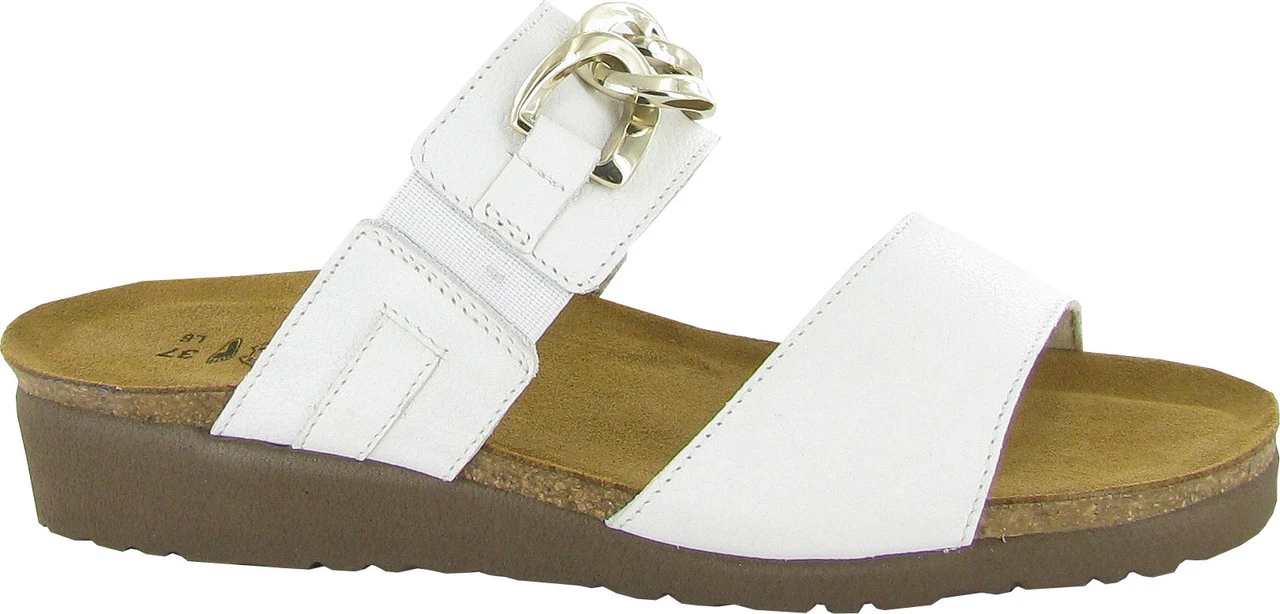 Englin’s Fine Footwear presents the women’s ‘Victoria’ from Naot. The Victoria is a versatile slide to go from day to night, featuring a bold chain. Naot’s anatomic cork & latex footbed is wrapped in a pampering suede and molds to the shape of the foot with wear.