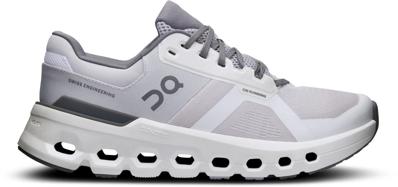 Englin’s Fine Footwear presents the women’s ‘Cloudrunner 2’ from On Running. The legend, leveled up. With more support, more comfort and more cushioning – for more fun on every run. For professional athletes and new runners alike, our Helion™ superfoam is a game-changer. The upgraded midsole provides softer cushioning and higher energy return. Plus CloudTec® cushioning to absorb impact. So you can keep racking up the miles with confidence. From toe to heel, each element of the Cloudrunner 2 is designed to support your foot during movement. A plush tongue means total comfort and easy step-in, while a durable heel clip helps to lock in extra stability and support. (And say goodbye to trapped stones, thanks to an updated outsole.) For the Cloudrunner 2, the tech upgrades don’t stop at comfort and performance. This next-gen style features a new mesh upper made of 100% recycled polyester. So it’s not just a stride forward for you, but for sustainable practice too.